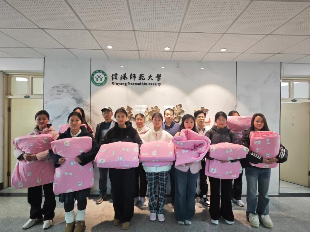 11 月 20日,信阳师范大学旅游学院2025“冬季送温暖”爱心棉被发放仪式在学院大厅温情启幕。学院领导班子与辅导员携手为 20 余名家庭经济困难学生,送上满载牵挂与暖意的爱心棉被。厚实的棉被、暖心的叮嘱,将学院的深切关怀精准传递,为即将到来的寒冬注入浓浓暖意。