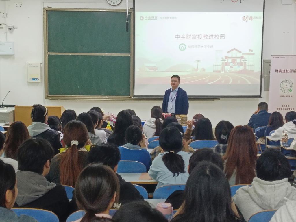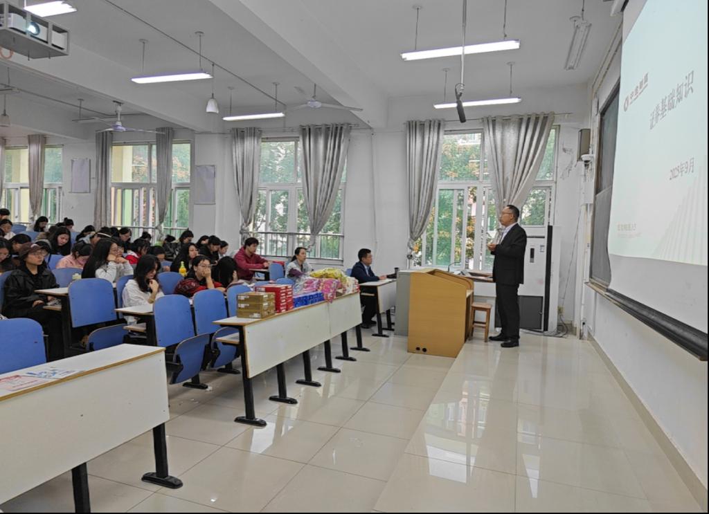 宣讲会现场,信阳师范大学政法学院优秀校友陈原率先开讲,为同学们系统讲解金融领域基础知识,构建起金融知识学习的入门框架。随后,余海洋围绕证券、股票基础知识及核心术语展开深入解读,助力学子们破除证券知识认知壁垒。中金财富证券投资顾问张克结合实践经验,分享证券投资思路与风险防控要点,引导学生树立理性投资观念。最后,陈原聚焦证券行业职业规划,详细解读求职要点、晋升空间及券商未来发展趋势。并强调职业选择需关注企业“企业文化、战略方向”与团队“团队氛围、领导风格”两大核心因素,并鼓励毕业生以赛促学,深化金融知识应用能力。