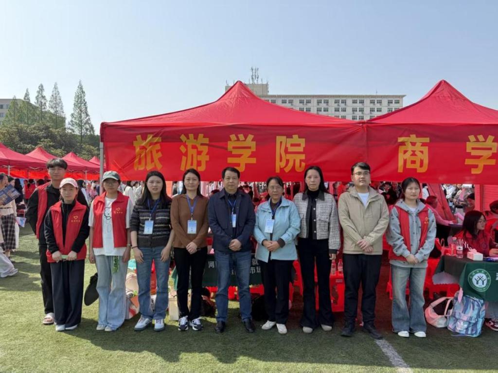 春暖四月,就业筑梦。4月10日,河南省毕业生就业市场豫南分市场暨信阳师范大学2026届毕业生春季双向选择洽谈会在我校西操场隆重举行。旅游学院号召毕业生抢抓春季就业关键期,积极参加本次双选会。旅游学院党委书记雷前龙、副书记路璐、副院长吴国琴、心理专干闫会姝、专职辅导员赵子鉴、黄倩深入双选会现场,精准把握文旅行业招聘趋势及毕业生求职需求。