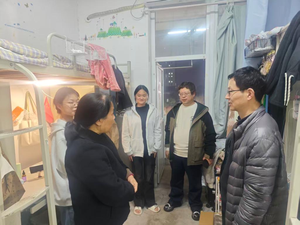 走访过程中,领导老师们走进每一间宿舍,与同学们亲切围坐、暖心交谈。杨乐副处长语重心长地询问同学们近期的学习状态、生活起居情况,细致了解大家在学业规划、日常起居中遇到的困难与困惑,耐心回应同学们的疑问。同时,围绕宿舍安全管理重点,就安全用电、防诈骗宣传、寝室环境卫生等方面提出明确要求,叮嘱同学们提高安全防范意识,养成良好生活习惯,营造整洁、安全、和谐的宿舍氛围。学院党委副书记则结合当下春日好时节,鼓励同学们走出宿舍、拥抱自然,积极报名参与学校即将举办的春季运动会,在运动中强健体魄、锤炼意志。她强调,希望同学们以全面发展为目标,在学好专业知识的同时,积极参与文体活动与实践锻炼,成长为德智体美劳全面发展的合格劳动者,不负青春韶华。
